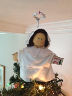 t know because that seems to be his favorite too. I think the jingle bell carolers Rock the House Baby!! They really have some cool dance moves too… The new Christmas Tree Angel looks so awesome…she told me that she loves her new outfit and will make it a very special Christmas for everyone because while you all are sleeping… LooLoo will Love my songs and may dance with me all night long. She likes to roll over on her back and dance with her legs in the air.. I think it is so funny I almost fell out of the glass the other day… Thanks for letting me use your computer to write this letter.. I had to hop from key to key because the letters are so big. It was so much fun … I used my tushy to make a space.. I know all the other Elves in Newburyport and in Amesbury too. They are all my friends and we sometimes get together during the summer and go to Camp Elve…it in the North Pole where we learn things like hiding and cool tricks and pranks… On time I tucked a sheet up at the top part of Lemons bed then folded it at the middle and tucked it in so when Lemon tried to get into the bed he couldn’t…hehehehehe it was great! We all laughed… Thanks for the cool letter Izzy.. I think I have the best kid to watch in the whole world… Be good Love Shelly