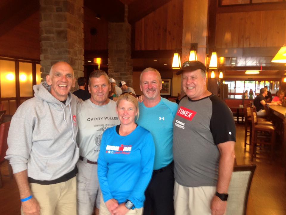 world from 2007 fast forward to this past week in 2015 that same competitor and the Fighting Bulldogs reunited by chance in the lobby of our hotel during the lake Placid Ironman stay. Trish remember Dave’s kindness and has bonded with us as an honorary Bulldog (another link in our chain, please excuse the pun) . I continued to learn much about the foundations of sportsmanship from each of the Bulldogs…which has resulted in bonds with some outstanding athletes through the world. This has proven to be more enjoyable and longer lasting than any 1st place victory. Go Fighting Bulldogs.. see you in October 2015 at the Marine Corps 10K.