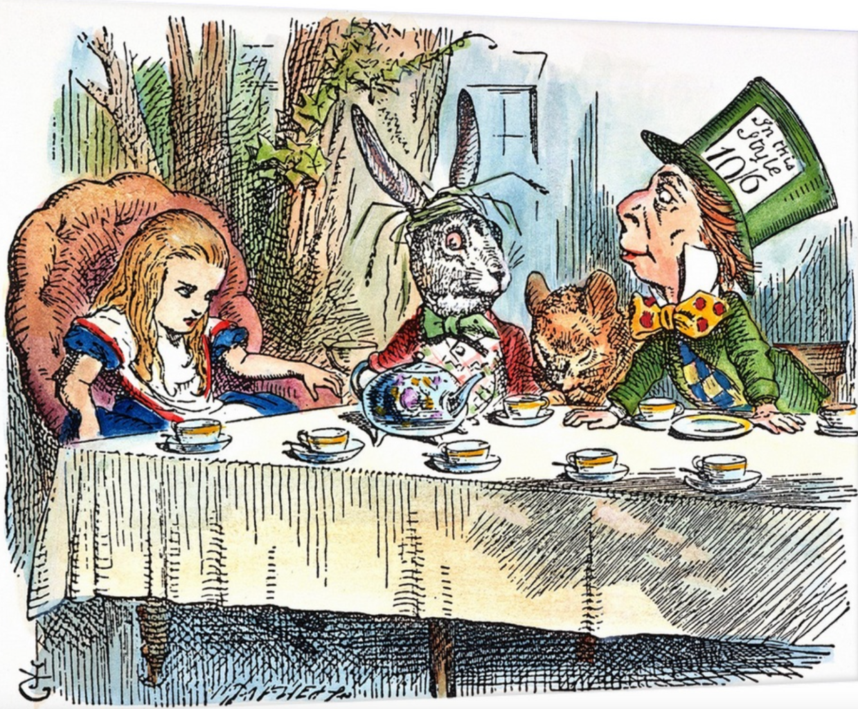 Have you ever wondered about the meaning of the card in the Mad Hatter’s hat? The 10/6 refers to the cost of a hat — 10 shillings and 6 pence, and later became the date and month to celebrate Mad Hatter Day.