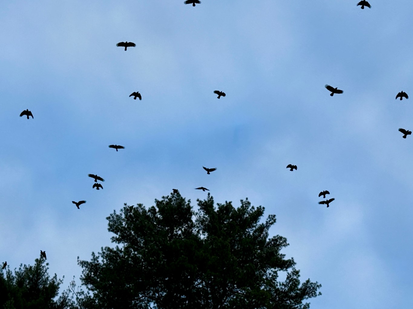 We heard an awful racket out back, crows circling overhead, cawing loud enough to wake the ancestors. It was a full-on murder in the sky.